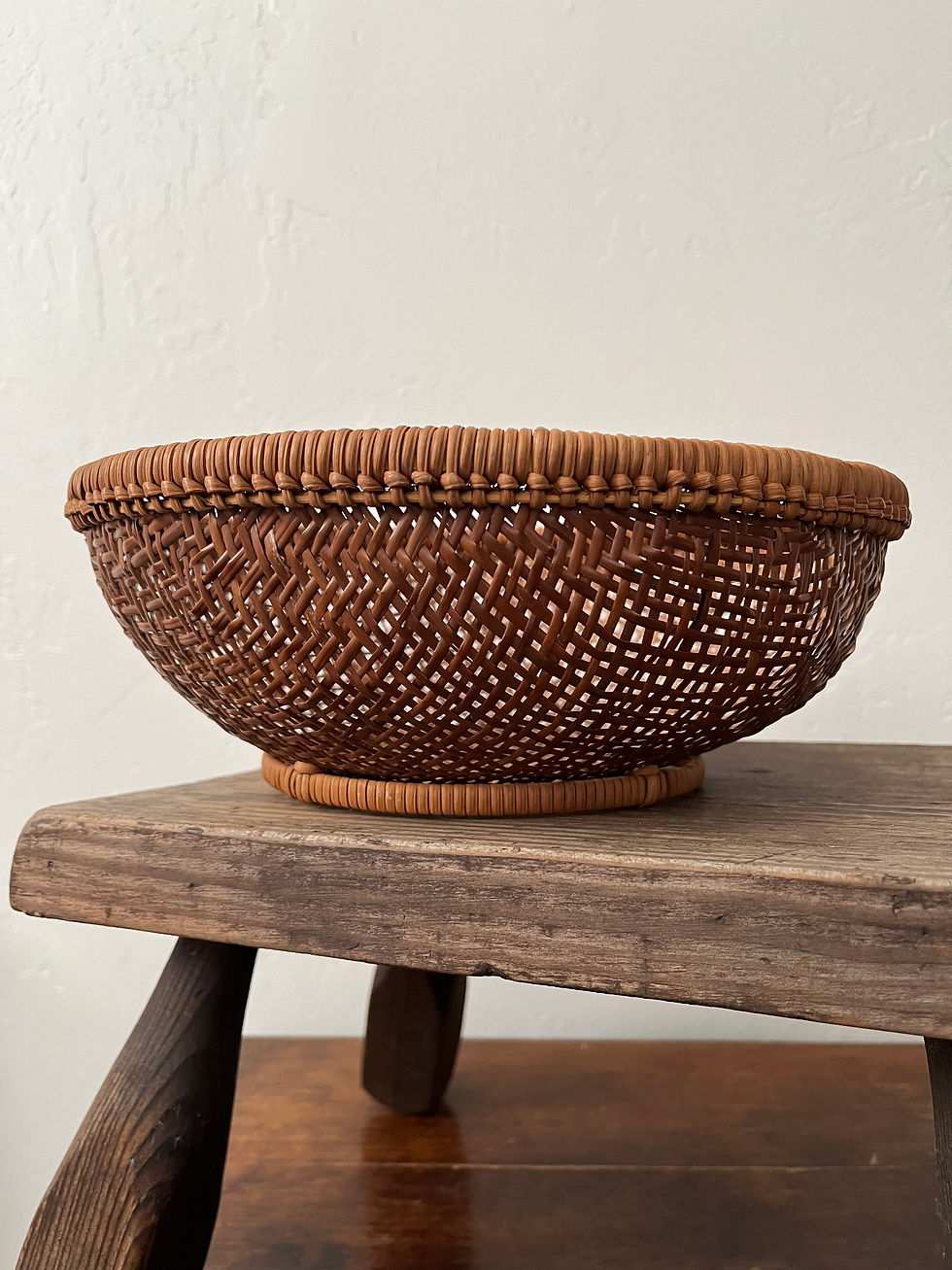 Vintage Scalloped Round Wicker and Oval Basket Set